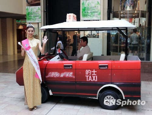 10月29日,高贵大方的“东方新天地香港亲善大使”身披绶带、头戴皇冠、乘坐“港式的士”巡游商场,与顾客亲善互动。为预祝第13届北京-香港经济合作研讨洽谈会圆满成功,东方新天地于2009年10月24日至11月1日举办“京港同心,盛世璀璨”主题活动,携手香港旅游发展局“60年看香港图片展”、香港贸易发展局“香港·设计廊开业庆典”等活动,表达京港两地同心协力共创辉煌的愿望,为京港洽谈会送上美好祝福。中新社发 老罗 摄