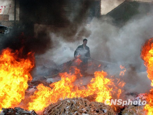 10月30日下午,浙江温岭市城北街道杨家渭村一空旷垃圾场起火,接到报警后,温岭市城北消防队消防人员用了近一个小时才大火扑灭。据了解,引发这次火情的是一些经过该处的外来务工人员乱扔烟蒂所致,此次火情险些殃及杨家渭村道边的几根高压电缆,所幸是除垃圾边角料烧掉外并无任何经济损失和人员伤亡。 中新社发 金云国 摄