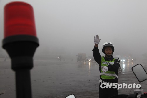 11月9日上午,四川眉山市遭遇大雾袭击,多数地方能见度不足30米,给当地市民的出行带来诸多不便。 中新社发 尧遥 摄