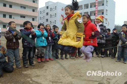 12月15日,四川省江油市含增镇学校学生正在新宿舍楼前的操场上上体育课。当日,该校由中国红十字会总会捐资520万元捐建的3487平米教学楼和河南安阳捐资247万元援建的1274平米学生宿舍楼,通过初步验收。新教学楼有48间教室,可供1600余学生上课,新学生宿舍楼可供700余名学生住宿。 中新社发 成和平 摄