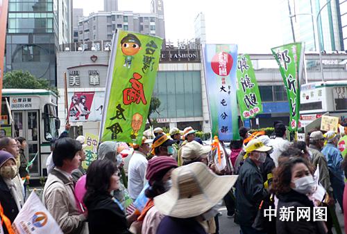 12月20日,民进党发起所谓“破黑箱,顾饭碗”大游行。“扁友会”也来掺一脚。 中新社记者 陈立宇 摄