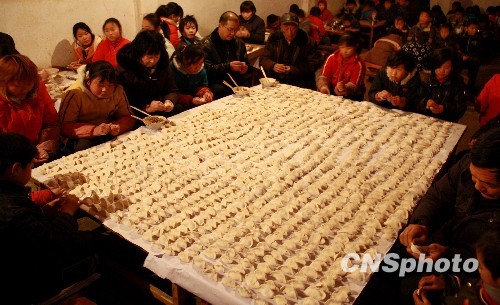 12月21日,山东巨野县政府工作人员与章缝镇巨南民立学校师生一起包饺子。冬至临近,山东巨野县劳动保障局与当地政府的工作人员来到章缝镇巨南民立学校,与200多名留守农民工子女一起包饺子,迎冬至,让这些父母不在身边的孩子感受社会大家庭的温暖。中新社发 王齐波 摄
