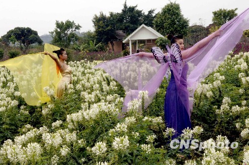 图为美女蝴蝶在百花丛中起舞。中新社发 刘卫勇 摄