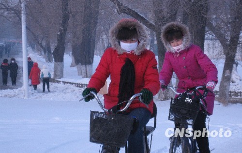 12月31日,人们在低温下艰难行进。近日,齐齐哈尔出现低温天气,连续3天最低气温达到零下34度,白天最高温度也仅为零下25度。当地迎来冬季最寒冷的天气。中新社发 王云龙 摄