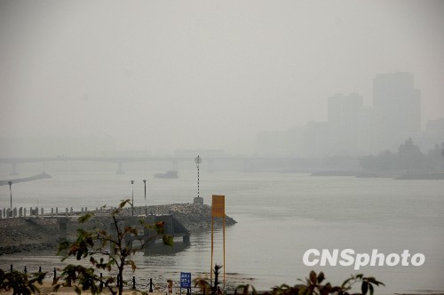 1月5日,受强冷空气南下袭击福建的影响,福州市最低气温骤降至5摄氏度,早晨的闽江被浓雾笼罩,能见度不及5米。中新社发 王东明 摄
