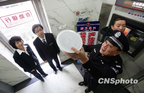 针对电信类诈骗案件的高发态势,北京警方也在不断变换升级防范方法。近日,西城区部分自助银行已经安装了红外感应自动语言提示器。这种由北京警方和一网络技术公司共同研发的装置,可以感应到前来办理业务的客户并及时进行语音提示。中新社发 张岩 摄