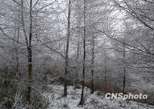 2010年1月7日,受连日来南方持续低温影响,湖南省湘西土家族苗族自治州龙山县茨岩塘镇大山中出现雾凇景观。中新社发 唐荣沛 摄