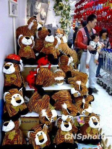1月11日,中国传统虎年日益临近,福州各大商场的“虎娃”玩具开始热销。中新社发 王东明 摄