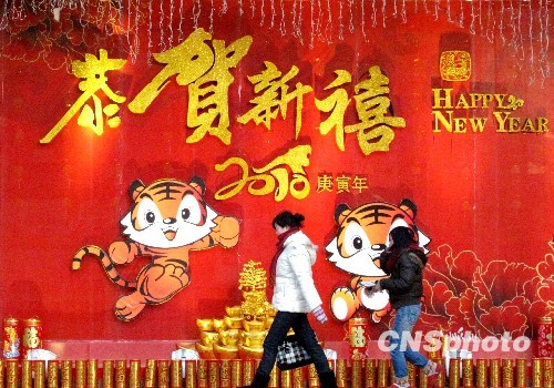 春节临近,南京一些商家纷纷装饰门厅店堂,街头的各种年俗装饰物营造出浓浓的年味。中新社发 钟山 摄
