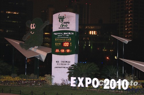 2010年1月21日凌晨,位于上海浦东陆家嘴中心绿地的2010上海世博会开幕倒计时牌显示:距上海世博会5月1日开幕还有100天。中新社发 朱纯琰 摄