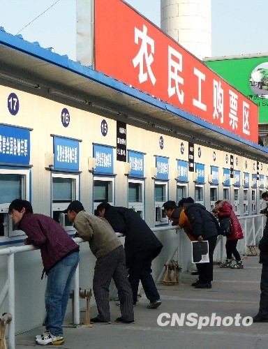 2010年1月26日, 北京西站西广场,春运临时售票处的“农民工售票窗口”开始启用。中新社发 玉龙 摄