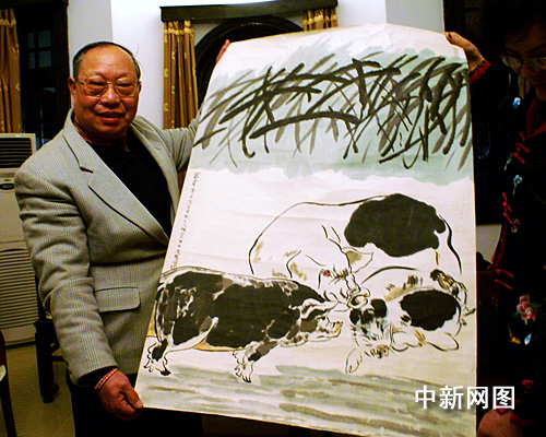中新网盐城2月9日电 (于从文 李根)记者今天从上海联洲文化传播有限公司得到消息,一幅由徐悲鸿创作、台湾收藏家收藏的《富贵猪图》已被专家鉴定为真品,近日在上海的知名人士范光陵先生寓所首次向媒体公开亮相。国画大师徐悲鸿以画马著称于世,这幅以猪为内容的作品在收藏界堪称罕见珍品。