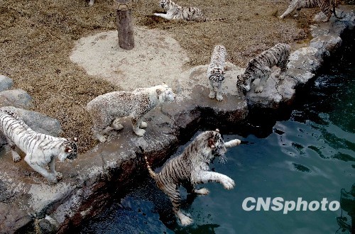 2月11日,广州香江野生动物世界虎年重点项目——百虎山盛大揭幕。包括华南虎、金虎、银虎、白虎、孟加拉虎、东北虎六大虎种的300多只老虎齐聚百虎山,游客不仅能见识到老虎爬树、跳水的英姿,更能感受母虎哺乳幼虎的温馨场面。中新社发 刘卫勇 摄