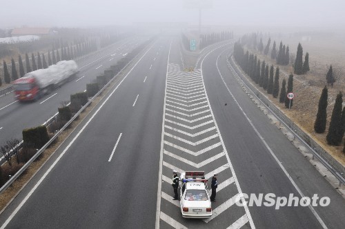2010年2月23日,大雾降临山东省日照市。上午8点至11点,辖区内同三高速、日东高速短暂封闭,公安交警部门启动恶劣天气应急预案,确保道路畅通。 中新社发 陈为峰 摄