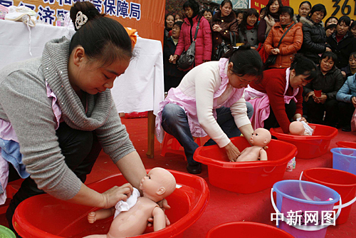 2月22日,在福建省顺昌县的一场家政服务员技能展示暨就业招聘会上,包括省妇女就业服务中心在内的福建8家相关家政服务单位前来现场招工,吸引当地大批农村妇女及下岗失业女工。据了解,当地从2005年开始已举办10期共800多人的家政服务、育婴师(月嫂)培训班,“顺昌月嫂”已在省内颇具名气。杨生友 邱淑娥 摄