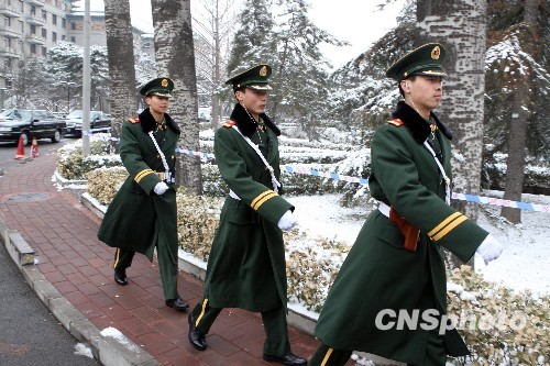 3月1日,北京警方加强了全国两会驻地的安保工作,确保两会顺利进行。全国政协十一届三次会议、十一届全国人大三次会议将分别于3月3日、3月5日在北京开幕。中新社发 汤彦俊 摄