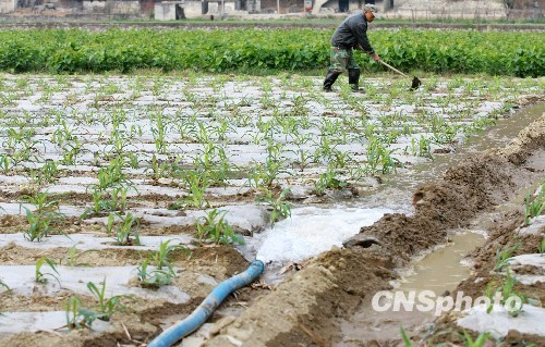 3月10日,群众在抽水浇地。连日来,广西凤山县旱情不断加剧,该县已于3月9日再次发布干旱红色预警信号。旱情的不断升级,群众饮水和春耕生产受到日益严重的影响,凤山县动员全县干部群众奋力抗旱。中新社发 周恩革 摄
