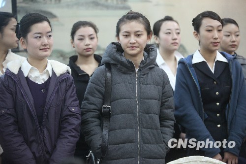 3月17日,海航集团在南京举行招聘乘务员面试。海航集团2010年空中乘务员大规模招聘近日在全国展开,预计招聘700人左右。海航集团已定于3月在青岛、长沙、成都、南京、天津五城市举行乘务员面试,后续计划于4-6月在上海、大连、哈尔滨、广州等城市开展乘务员面试。中新社发 刘小楚 摄