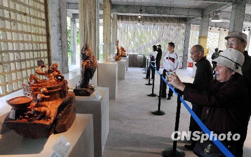 3月29日,福建省入选上海世博会的30件木雕精品在福州举办的“中华艺术.国家大师珍品系列会展——中国木雕精品展”上首次与观众见面。由文化部中华世界文化交流促进会等主办的“中华艺术·国家大师珍品系列展”——中国木雕精品展将于5月1日至5月31日在世博园文化中心展出。展出面积565平方米,分成8个区,展出作品180件,其中福建30件,是展出作品最多的省份之一。中新社发 刘可耕 摄