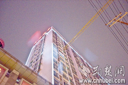 记者在现场看到,在汉阳商场旁边有一个工地,在高约40米的空中,一根塔吊吊臂伸进对面都市兰亭小区1栋2单元1311室(如图)。