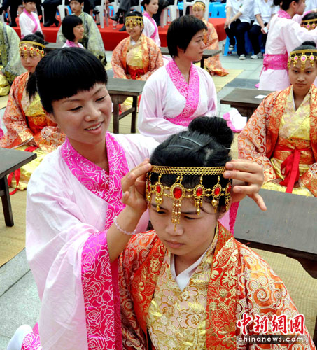 5月6日,来自福州市各地区及闽侯县的近500名18岁学生身着汉服参加在福建省昙石山遗址博物馆广场举行的“庚寅年闽侯县第三届传统成人礼”。该传统成年礼采取三加礼的形式,经过祭酒、初加礼、二加礼、三加礼、拜孔子、拜剪、拜称、成人宣誓等传统仪式。华夏民族自周代就有了成年礼,又称冠笄之礼,是古代社会第一大礼,也是人的一生中最重要的仪式。主办方通过举办该成年礼仪式,旨在继承和弘扬中华优秀传统文化,激励青年人健康成长。