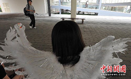 5月6日是上海世博会开园第六天,参观者没有明显上升,浦西园区咖啡店招揽顾客的天使姑娘,正在静静等待。中新社发 贾国荣 摄