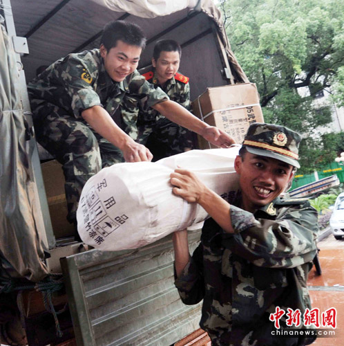 6月25日下午,武警福建总队抗洪救灾物资运抵闽北顺昌县。据介绍,武警福建总队向顺昌县捐赠了大量急需物资,包括帐篷750顶、竹凉席750床、毛巾1000条以及衣物等共计6190件,总价值近40万元。 该批物资是当天上午从福州分3车运抵顺昌的。刘可耕 摄