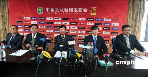 5月15日,中国足协在北京举行新闻发布会,新一届国字号教练组正式亮相。国足主帅高洪波、国奥主帅刘春明、国青主帅宿茂臻、国少主帅张宁到场出席。中新社发 王辰 摄