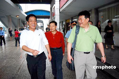 2009年5月25日,中国女排国家队结束为期50天的集训离开湖南郴州,开始新的征程。当天,新一届中国女排在主教练蔡斌率领下乘坐K82次列车奔赴河南漯河市,参加即将于5月29日至31日举行的2009中国国际女排精英赛。这是新一届中国女排国家队的首度亮相,届时将有中国、古巴、多米尼加、土耳其四国的女排精英献上精彩赛事。 中新社发 贺茂峰 摄