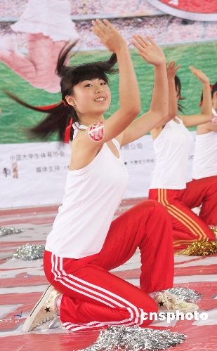 5月31日,亚运啦啦队中国选拔赛昆明站比赛在云南大学举行。云南大学的21支队伍和20名个人选手展开激烈角逐。本次选拔赛有海选赛、大区赛和总决赛三个阶段,最后入围的啦啦队将亮相2010年的广州亚运会。中新社发 刘冉阳 摄