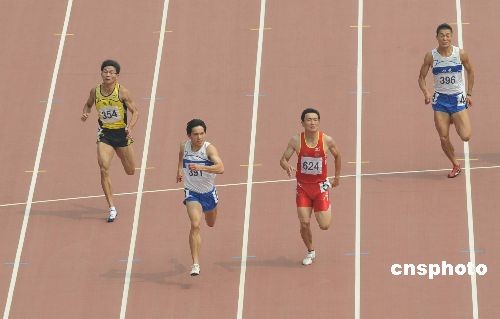2009年7月5日, “十一运”田径测试赛暨2009年全国田径大奖赛(济南站)第3天的比赛中,江苏千年翠钻队选手李翔龙以21秒31的成绩夺得男子200米冠军。中新社发 张侃 摄