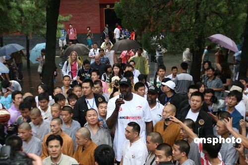 7月13日,河南登封,NBA著名中锋奥尼尔用手机记录“千年古刹”少林寺。当日,NBA著名中锋奥尼尔造访少林。中新社发 王中举 摄