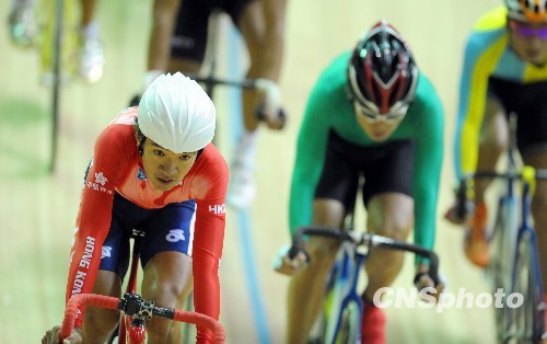10月17日,香港选手黄金宝在济南举行的第十一届全运会自行车男子场地记分赛上实力超群,轻松进入下一轮比赛。中新社发 陈文 摄