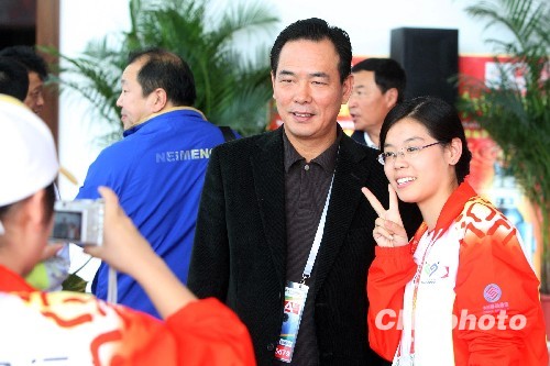 10月20日,中国国家体育总局副局长蔡振华亲临全运射击赛场观赛,蔡振华的到来引来了众多女“粉丝”的“围堵”。中新社发 汤彦俊 摄