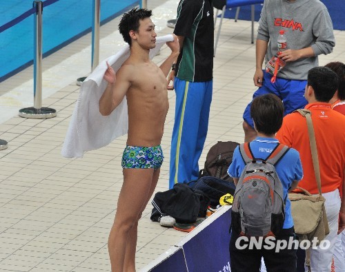 10月21日晚,中国“泳坛王者”张琳在济南第11届全运会赛场边热身,他今天表示将轻装上阵参加1500米自由泳决赛,力争四金。中新社发 贾国荣 摄