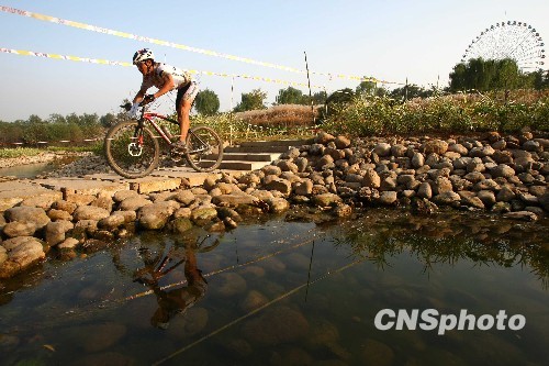 10月22日,在第十一届全国运动会男子山地自行车越野赛决赛中,段志强(图)以2小时06分04秒的成绩获得冠军。中新社发 富田 摄