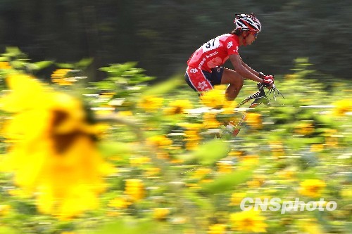 10月22日,香港选手陈振兴在第11届全运会男子山地自行车越野赛中,以2小时7分7秒摘得银牌。图为陈振兴在比赛中。中新社发 富田 摄