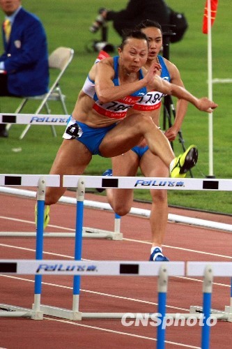10月22日晚, 四川选手刘静以13秒15的成绩,夺得十一运会田径项目女子100米栏的金牌。中新社发 王中举 摄