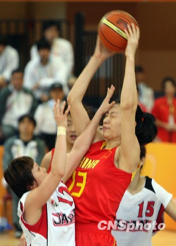 12月3日,东亚运篮球进入第二天比赛。当天上午,在香港西区公园体育馆进行的女篮预赛中,中国队(红)以五十四比五十九不敌日本队(白)。中新社发 郑祚声 摄