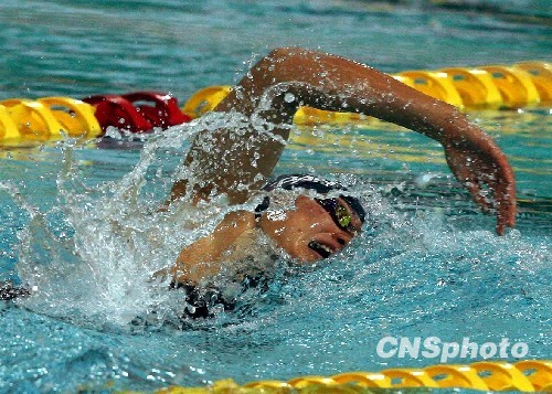 十二月八日,香港举办的东亚运动会进入第四天赛程,中国选手刘京以一分五十九秒五五夺得女子200米自由泳金牌。当天,共有二十枚金牌产生。包括游泳八枚、保龄球二枚、射击一枚、跆拳道六枚和举重三枚。中新社发 洪少葵 摄