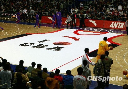 12月19日晚,2009/2010赛季CBA联赛在上海盛大开幕。开幕式现场,球迷成为绝对的主角,全场身着“我爱CBA”字样T恤的球迷共同为CBA新赛季的启动呐喊助威。一件长约15米、印有“我爱CBA”的特大号篮球比赛服展现在球场中央,这也与看台上无数身着同样服装的球迷心声共鸣。中新社发 沈晨 摄