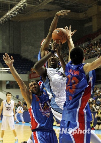 1月20日晚,客场连负的北京金隅队主场对阵天津荣钢,再以92:110败给前来挑战的天津荣钢队。中新社发 王韶骅 摄