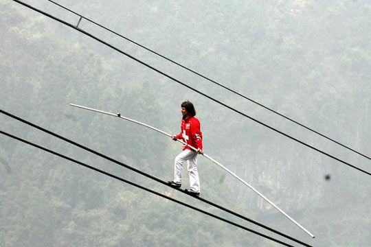 组图:中瑞高空钢丝王对决 双双中途弃战(2)