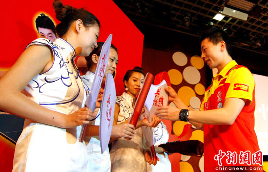 图:乒乓球冠军马龙选“兵器”对阵球迷