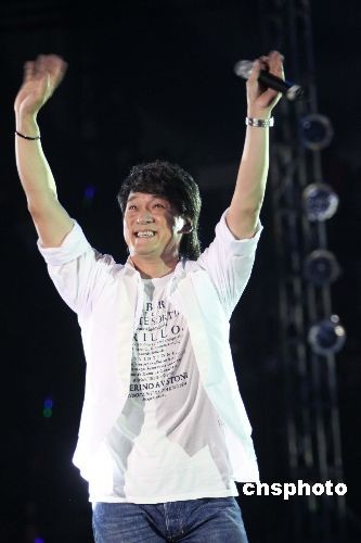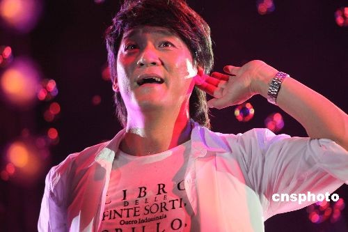 2009年7月14日晚,红2009魅力恒丰群星演唱会在江苏徐州体育馆举行。著名歌星周华健等明星激情演唱,与歌迷亲切互动。中新社发 雍君 摄