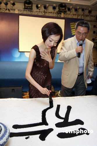 2009年7月16日,《世界》杂志明星旅行家环球大探访活动在北京启动。羽泉、鲁豫作为探访大使代表出席了启动仪式,并现场挥毫泼墨一展书法功底。明星旅行团将分别抵达日本冲绳、意大利米兰、美国犹他州、马来西亚沙巴等地,并在探访归来后为读者呈现第一手的探访笔记。中新社发 袁方 摄