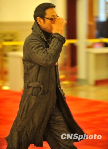 全国政协委员、影视艺人陈道明在参加3月初的全国政协十一届三次会议时,注意用手掌“屏蔽”记者的镜头。中新社发 贾国荣 摄