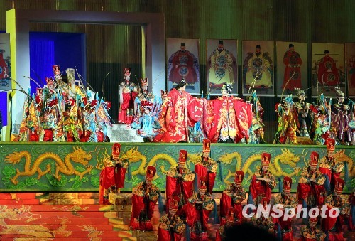 27晚,经大陆著名导演张艺谋重新诠释的意大利歌剧《图兰朵》在台湾台中市的洲际棒球场上演。这是迄今为止大陆与台湾文艺界的最大规模携手合作,也是海峡两岸有史以来最为隆重的文化交流活动。雄伟的场面,强烈的色彩,富丽堂皇的宫殿、华丽无比的服装,张艺谋的台湾版《图兰朵》令人惊艳。中新社发 闫晓虹 摄
