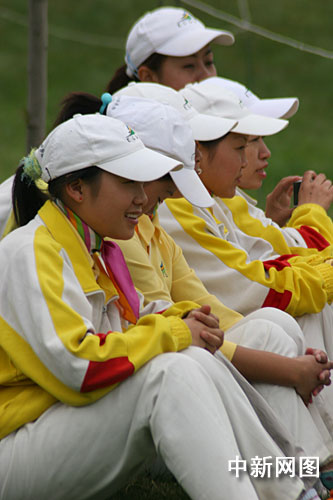 9月21日至24日,2006 欧米茄中国巡回赛举行昆明站的比赛。比赛期间,昆明乡村高尔夫球场的女球童们在场外观战。 余瑞冬 摄