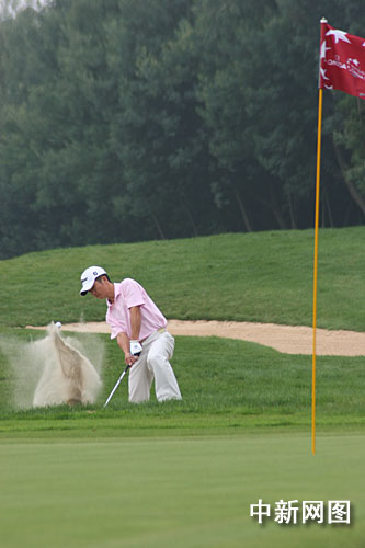 9月24日,高尔夫2006欧米茄中国巡回赛昆明站进入最后一轮决赛。图为排在领先组中的谭永宗在第九洞沙坑救球,他在此洞成功抓下一只“小鸟”(低于标准杆一杆)。 余瑞冬 摄